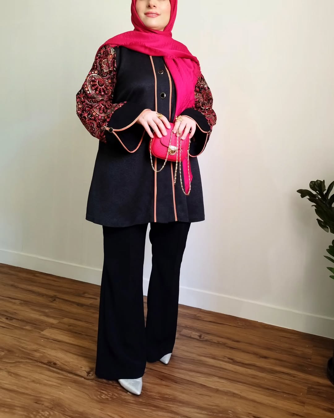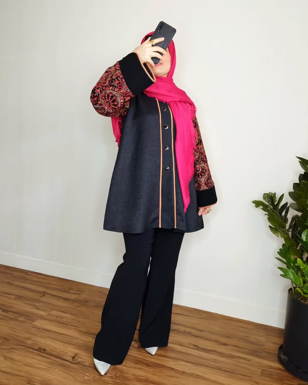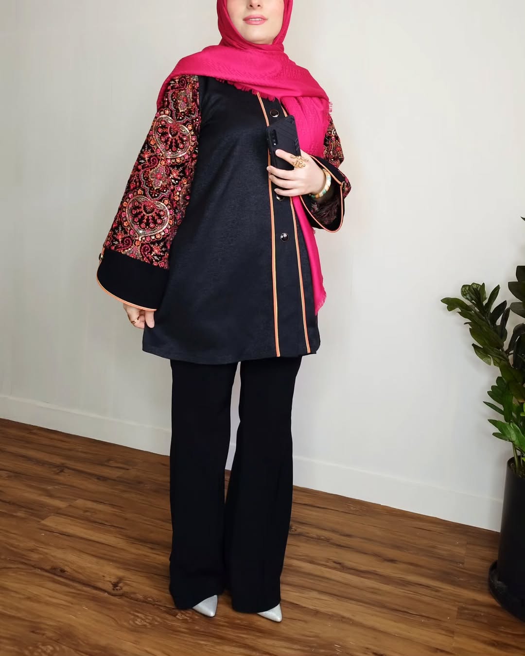 جنس کتان لمه مخمل نه هزار هندی سایز بندی 36تا52 قد مانتو 85