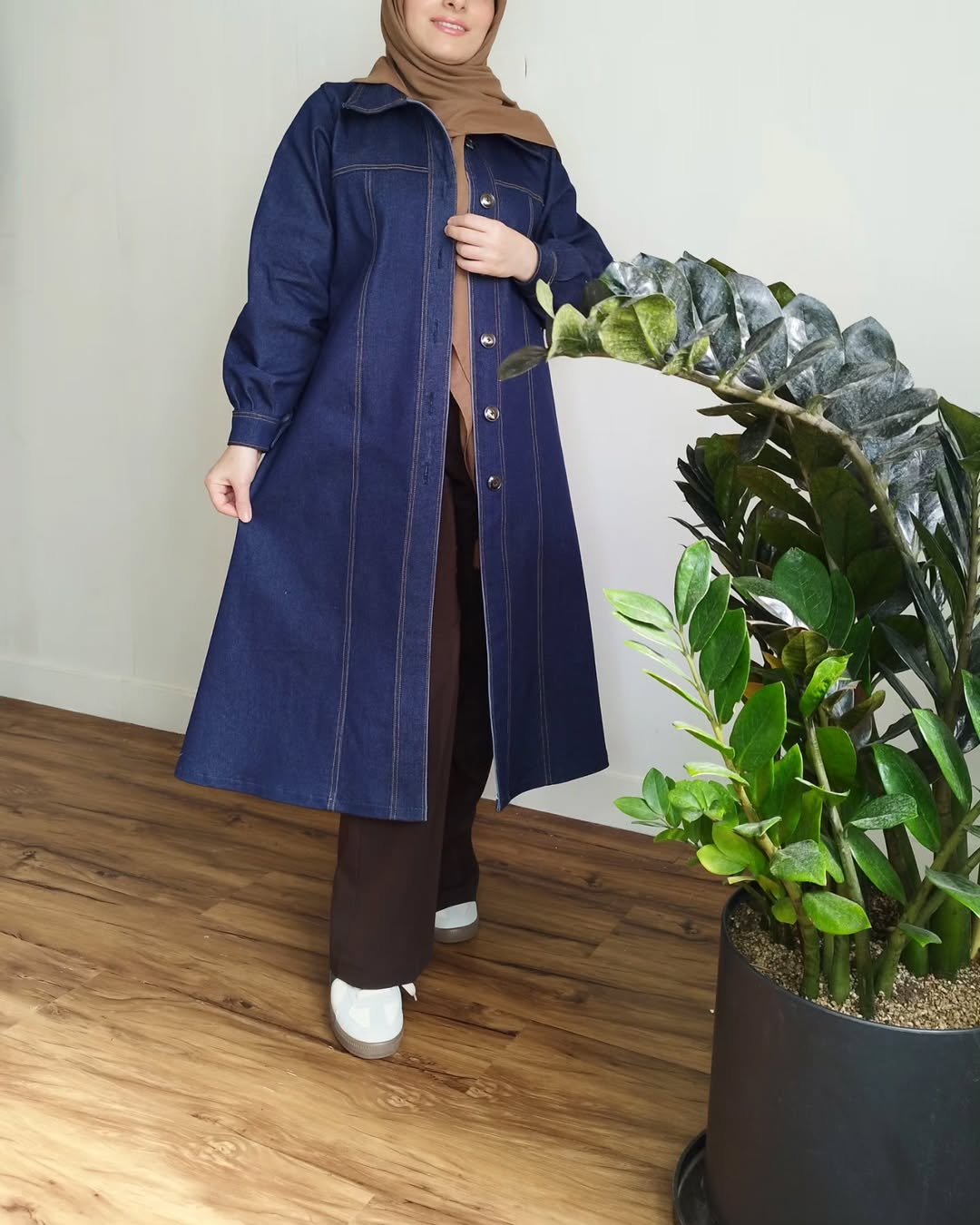 مانتوی جین قد بلند، با دوخت و کیفیت فوقالعاده ترک. رنگ ثابت و پارچه شستهشده، تضمین یک ماندگار. دوخت بینظیر روکار و دکمه ها ی خوشرنگ این مانتو رو بسی دلنشین کرده. سایز بندی ۳۶تا۵۲ قد مانتو ۱۱۵ قد قابل تغییر میباشد.