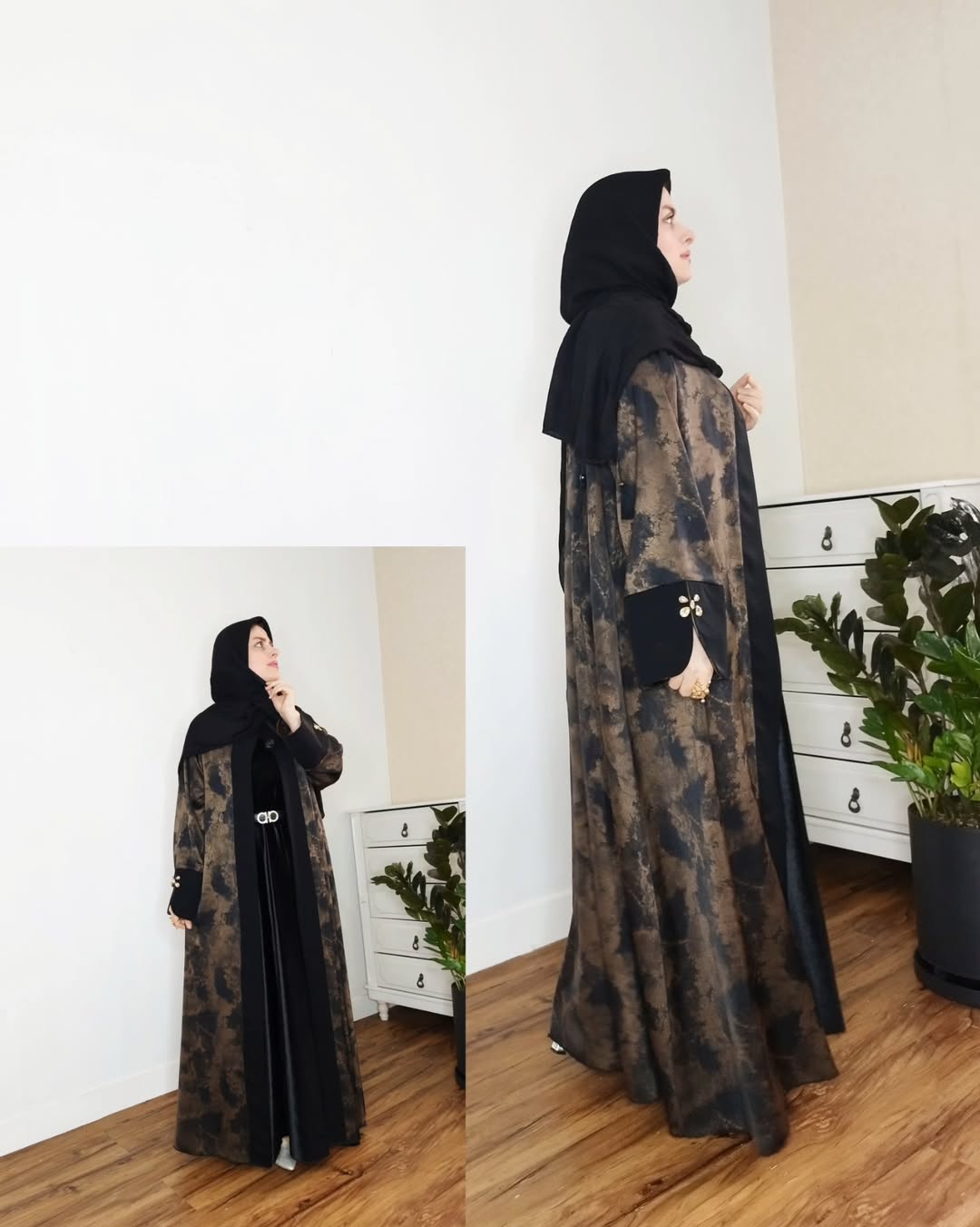 این عبا، همون قطعه گمشدهای هست که استایل شما رو از این رو به اون رو میکنه! معرفی شگفتانگیزترین ترکیب پارچه: بخش طرحدار: پارچه وارداتی با جلوهای خیرهکننده و بافت خاص. بخش مشکی: کرپ کرهای با کیفیت تضمین شده برای ایستایی بینقص و رنگ ثابت.