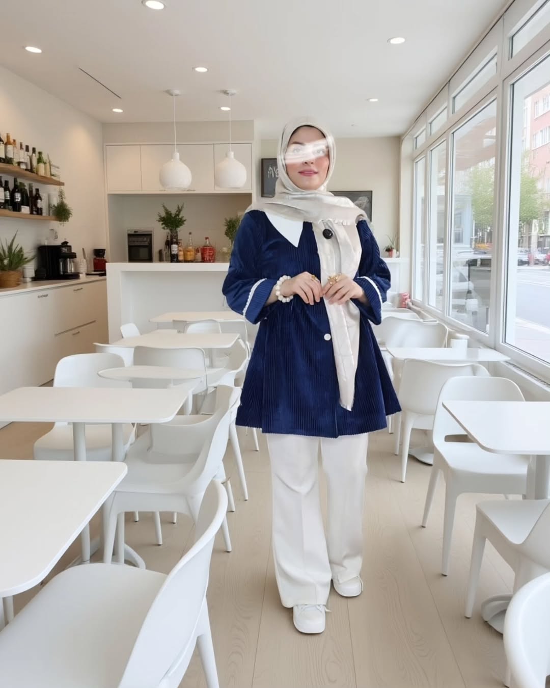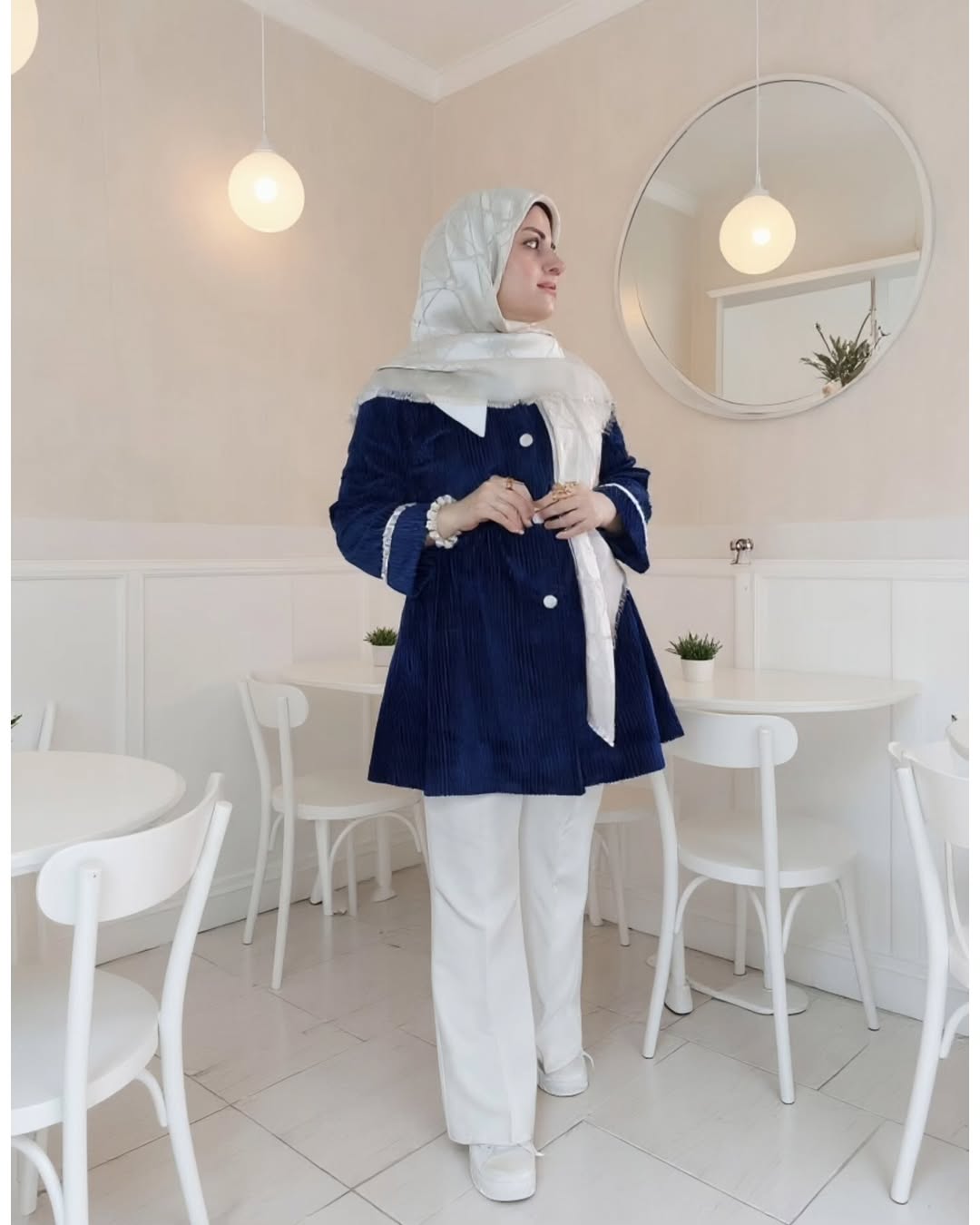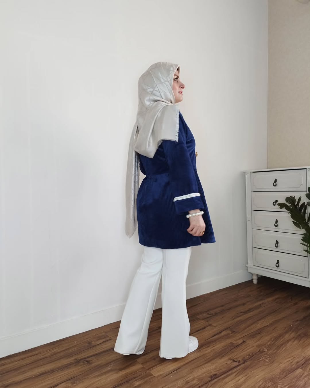 مانتو مخمل براق سرمهای مدل پرطرفدار عروسکی با پارچه مخمل کوبیده و براق درخشش فوقالعادهای دارد. این مانتو با ترکیب رنگهای خنثی روشن، استایل شیک و مجلسی ایجاد میکند.