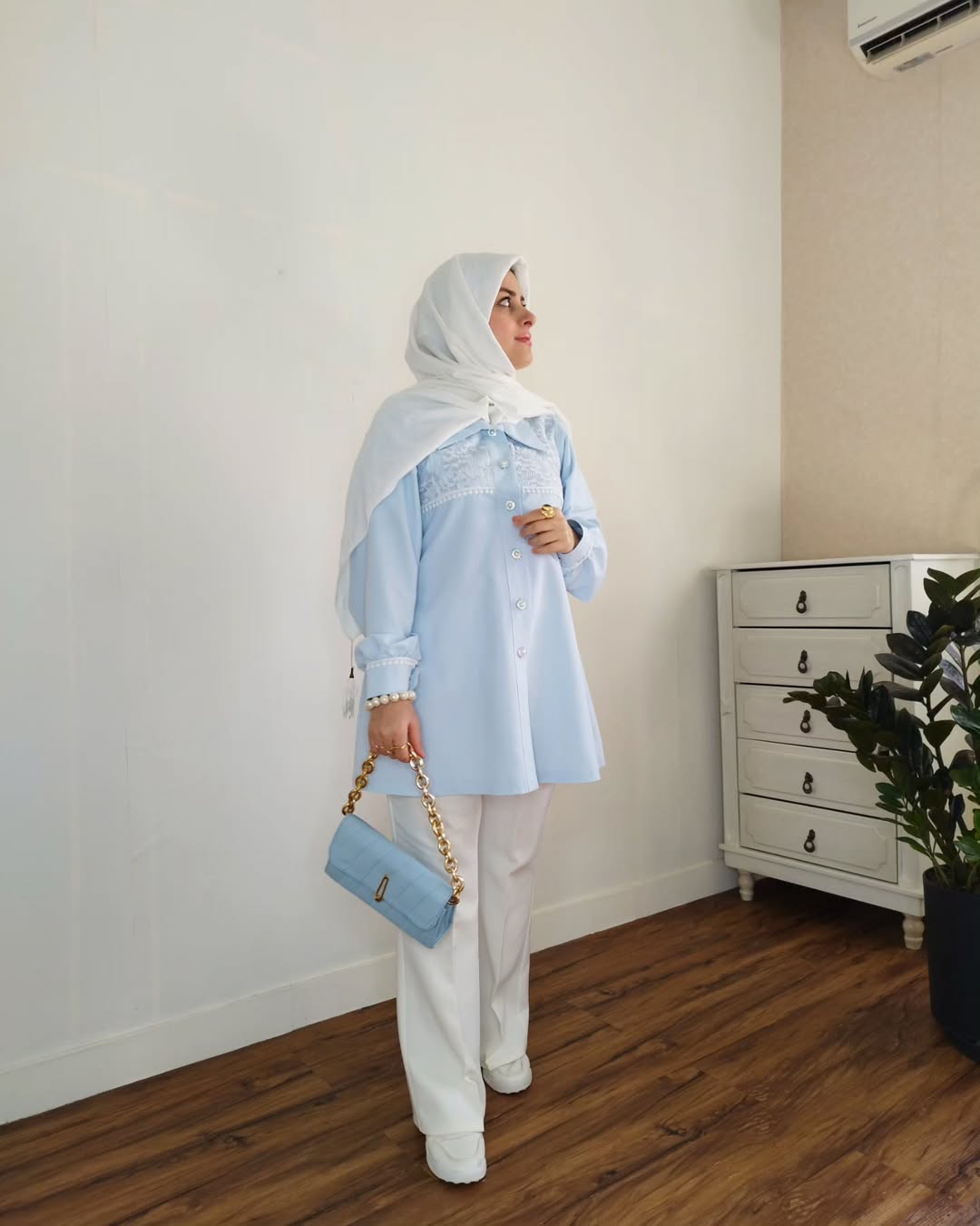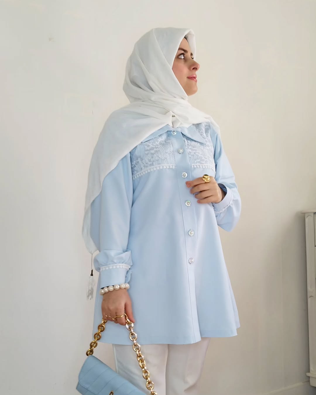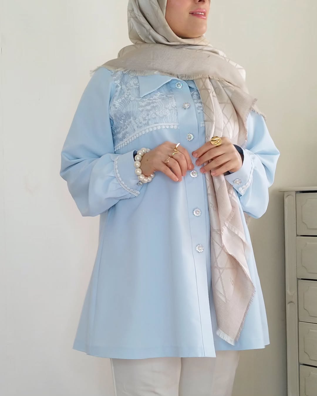 این مانتو از پارچه بسیار مرغوب و با کیفیت به اسم کرپ زبده درست شده. ما همیشه از این جنس پارچه استفاده کردیم و واقعا حرفی برای کیفیت خوبش نیست. همچنین دارای گیپور فرانسوی دانتل و نوار دوزی است. قد کار ۸۰ قابل تغییر میباشد.